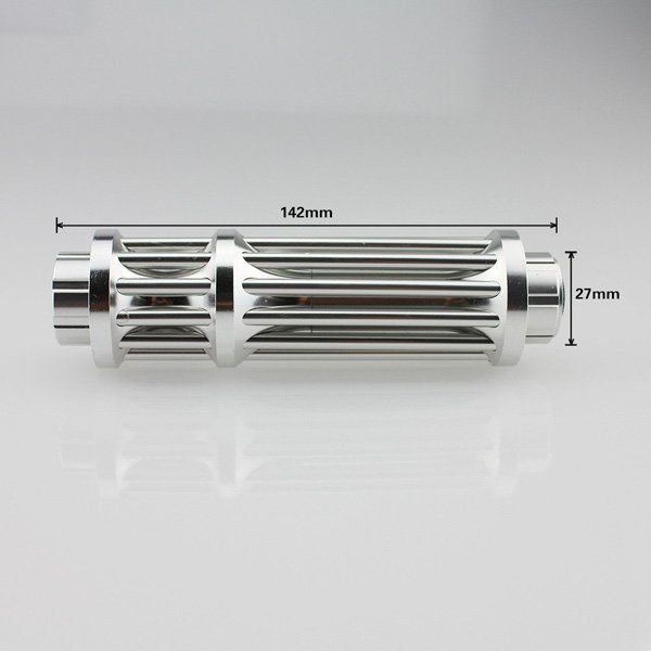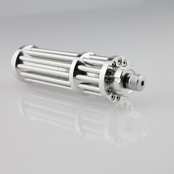 Different from the last version of mini gatling shape laser pointer, the latest version comes with a built in battery and usb charge / discharge port. That means you can serve it as a move power supply. This built-in battery laser pointer can charge many kinds of electronic products. 1000mW output power is enough for burning and stargazing,so compared with the last version, it’s more suitable for adventures.
